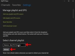 Step 4: Right now Once more, go back to the settings page and find the “Select channel playlist” section. Click on “Refresh” after picking the playlist you just added.