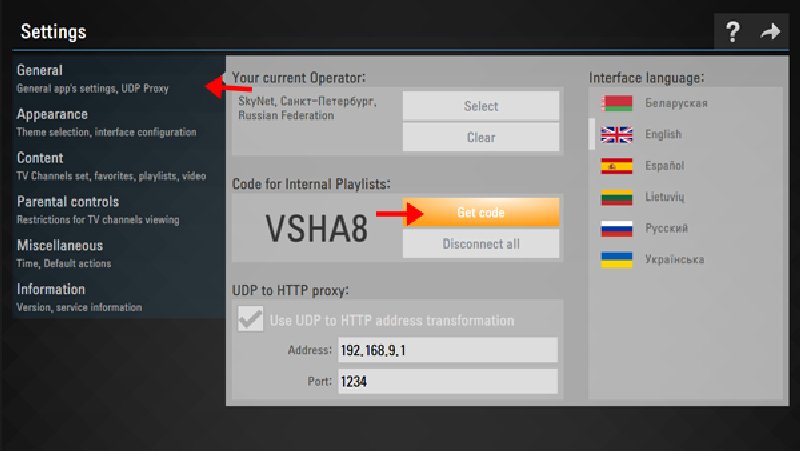 Step 3: If you wish to import a playlist with a temporary code, access the General subsection in the app’s settings. Then, click on the Get Code button. Keep in mind that the temporary code is only valid for 24 hours or until you generate a new one.
